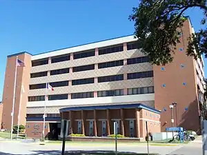 The present Scott County Courthouse was completed in 1955 and expanded along with the jail in 2007.[4][5] The old section of the Scott County Jail was listed on the National Register of Historic Places in 1983.[6] The courthouse was included as a contributing property in the Davenport Downtown Commercial Historic District in 2020.[7]