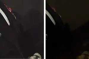 There is a similar portrait housed at the Uffizi in Florence, realized some six years earlier than the Antwerp painting. Both paintings reportedly are based on a 1855 photo.[1][2] The paintings are different in many respects, such as the objects depicted therein (hat, state decorations), the sitter's posture, and the lighting. The Antwerp version also differs from the apparently near-identical Fogg Painting (a self-portrait by Ingres realized in 1859, currently housed at the Fogg Art Museum) both in execution and structure; in the Antwerp version the lighting differs, and Ingres' hat produces no shadow.[1] In the Antwerp painting, produced five or six years after the Fogg painting, Ingres made himself look younger.[1]
