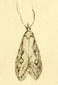 The wingspan is 24–34 mm.[2] Adults are on wing from March to April.[3]