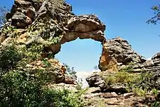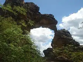 The Sete Cidades National Park is divided between the municipalities of Brasileira (26.21%) and Piracuruca (73.77%) in the state of Piauí. It has an area of 7,700 hectares (19,000 acres).[1] The park is surrounded by the 1,592,550 hectares (3,935,300 acres) Serra da Ibiapaba Environmental Protection Area, created in 1996.[2]