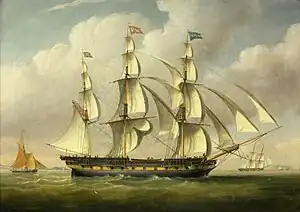 | Notes | Two decks, three masts, square stem, quarter galleries, and figure head[1] |