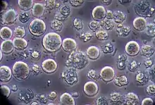 Sf9 cells, a clonal isolate of Spodoptera frugiperda Sf21 cells (IPLB-Sf21-AE), are commonly used in insect cell culture for recombinant protein production using baculovirus. They were originally established from ovarian tissue.[1] They can be grown in the absence of serum, and can be cultured attached or in suspension.[2]