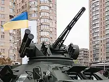 The Shturm turret is a remotely controlled turret, developed in Ukraine, for light armored vehicles.[1][2] The turret adds 1,300 kilograms (2,900 lb) to a vehicle's weight.[3] The turret was developed at the Kyiv Armoured Plant, in Kyiv.[4] The turret is armed with a ZTM-1 30mm autocannon, coaxial 7.62 machine gun, smoke grenades, and a launcher for a pair of anti-tank missiles.[5]