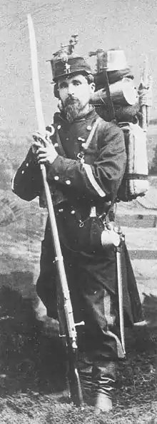 The Government of National Defense, led by Léon Gambetta, calls for the creation of free corps (or companies) of snipers intended to harass the enemy: "That each Frenchman receive or take a rifle, and that he is put at the disposal of the authority: the fatherland is in danger!". These volunteers appear in the Ardennes from August 1870 and multiplied after the disaster of the Imperial German Army, renewing a practice well known in border regions since the invasions of 1814 and 1815. Among these improvised units are the Scouts of the Ardennes, Chasseurs de l'Argonne, Montagnards de Revin, Corps franc de Vosges, and other units.[35]