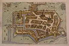 The siege of Saint-Omer (24 May – 16 July 1638) was a siege in the Thirty Years' War in which a French army under Gaspard III de Coligny, Maréchal de Châtillon, laid siege to the Flemish city of Saint-Omer, defended by a small garrison in command of Lancelot II Schetz, count of Grobbendonck. Despite several initial successes in the capture of the minor forts around Saint-Omer, on the night of 8/9 June a Spanish relief army under Thomas Francis, Prince of Carignano, surprised Châtillon's troops and established a small fort in the middle of the French lines.[2] An entire army corps under Maréchal de La Force was ordered to move towards Saint-Omer to support Châtillon siege, but on 12 July a further Imperial-Spanish force commanded by Ottavio Piccolomini entered Saint-Omer, resolving the French marshals to withdraw.[2]
