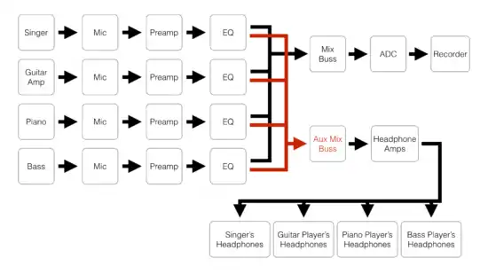 A diagram of a typical signal flow for a band