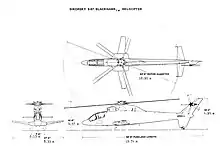 The United States Army issued a request for proposals (RFP) for its Advanced Aerial Fire Support System (AAFSS) program on 1 August 1964.[1] Lockheed offered its CL-840 design, a rigid-rotor compound helicopter.[2] Sikorsky submitted the S-66, which featured a "Rotorprop" serving as a tail rotor but as speeds increased would rotate 90° to act as pusher prop.[3] The S-66 had short, fixed wings and was powered by a 3,400 shp (2,500 kW) Lycoming T55 turboshaft engine. The design was to have a speed of 200 knots (370 km/h) with the ability for 250 knots (460 km/h) for brief periods.[4]