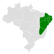 It is endemic to Brazil. Its natural habitats are subtropical or tropical dry forests and subtropical or tropical dry shrubland.
