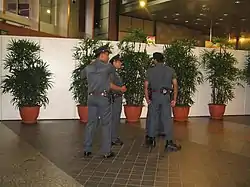 Over 10,000 police officers, including reserve members of the Singaporean national service and officers from the Volunteer Special Constabulary,[10] were deployed at event venues and the Marina Centre area. Officers from the Gurkha Contingent and the Key Installation Protection Unit were deployed to patrol the vicinity and at entrances to barricaded areas.