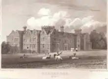 Dering married Mary Harvey, daughter of Daniel Harvey (a brother of Dr William Harvey) by Elizabeth, daughter of Henry Kynnersley on 5 April 1648.[3] They had 17 children, of whom 10 survived to adulthood. He was succeeded in his estates and title by his son Sir Edward Dering, 3rd Baronet. Among the other children, Elizabeth was married to Sir Robert Southwell, by whom she is ancestral to Camilla, Duchess of Cornwall;[4] Catherine to Sir John Perceval, 3rd Baronet, by whom she was the mother of John Perceval, 1st Earl of Egmont; Daniel, an Army officer, to Sir John's sister Helena Perceval; and Mary to Sir Thomas Knatchbull, 3rd Baronet.[5]