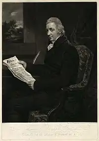He married a rich wife, and acquired a considerable fortune, and then devoted most of his time to social work for the benefit of the poor. From 1795 to 1806 he was treasurer of the Foundling Hospital for abandoned babies, in the concerns of which he took an important part. After his treasurership, he continued to play a role on the charity's Court of Governors holding the honorary title of Vice President, but resigned when taking on the baronetcy in 1810. He also helped to establish in 1796 the "Society for Bettering the Condition and Increasing the Comforts of the Poor," in 1800 a school for indigent blind, and in 1801 a fever institution.[1] He was a founding Director of the British Institution in 1805.