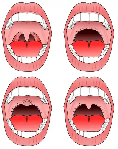 The procedure most commonly performed for sleep apnea is the uvulopalatopharyngoplasty (UPPP). This involves removal of the tonsils if still present, and a subsequent palatal procedure. The tonsil pillars are often sutured closed—and the uvula is either trimmed, cut, folded, reshaped, or sutured to the soft palate.[7] Studies have shown that treatment effect of UPPP with tonsillectomy increases with tonsil size.[8]