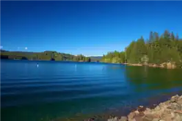 Sly Park Dam is located near Pollock Pines, California in the United States. The dam impounds Sly Park Creek and Hazel Creek, natural tributaries of the North Fork Cosumnes River, to form a 41,000 acre-foot (51,000 dam3), 650-acre (260 ha) reservoir called Jenkinson Lake. It was constructed as part of the American River Division of the Central Valley Project to provide irrigation water to a portion of El Dorado County, California. The dam was begun in May 1953, with clearing operations, and was completed in mid 1955.