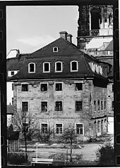 In 1837 a building was erected beside the theatre, covering almost half the façade.[17] A second storey and more windows were added to the building itself, and beginning in the second half of the 19th century, it was used as a residence. In the early 20th century, small handwork businesses moved into what had been the foyer; traces of metalworking remain.[17] The premises were also reportedly used by a photographic studio and by the post office.