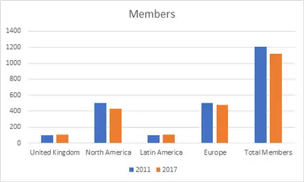 As of December 2017, the society consists of four regional chapters, two area groups, and five interest sections.[2] The regional chapters are: