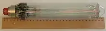 Single ended self-starting lamps are insulated with a mica disc and contained in a borosilicate glass gas discharge tube (arc tube) and a metal cap.[3][4] They include the sodium-vapor lamp that is the gas-discharge lamp in street lighting.[5][6][3][4]