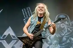 Sodom is a German thrash metal band from Gelsenkirchen, formed in 1981.[2] They have gone through many lineup changes, leaving bassist/vocalist Tom Angelripper as the only constant member. The band is currently composed of Angelripper, guitarists Frank "Blackfire" Gosdzik (who was a member of Sodom from 1987 to 1989 and rejoined in 2018) and Yorck Segatz, and drummer Toni Merkel. Along with Kreator, Destruction and Tankard, Sodom has been referred to as one of the "Big Four" of Teutonic thrash metal.[3][4] Sodom heavily influenced the German black metal scene.[5] In addition, the band is regarded as a pioneer of early death metal.[6] Mike McPadden wrote that the most Venom-blackened of German "Three Kings" (Destruction and Kreator being the other two), Sodom further merged thrash and death metal into a "wicked and decadent sound".[7]