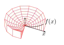 In geometry, a solid of revolution is a solid figure obtained by rotating a plane figure around some straight line (the axis of revolution), which may not intersect the generatrix (except at its boundary). The surface created by this revolution and which bounds the solid is the surface of revolution.
