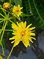 Tall shrub up to 2 m. Leaves pinnatisect with 10-15 pairs of equally spaced lobes, the lobes 6–40 mm wide. Inflorescence very large and dense, compound-corymbose. Individual heads with 30-50 yellow ray florets but no disc florets.