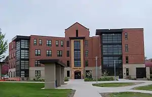 The University Student Union is at the center of campus and houses many amenities for both students and the public.[7] The Union is the home to numerous meeting rooms, a ballroom, The Hobo Day Committee (homecoming committee), the University Program Council,[8] Greek life[9] the Students' Association,[10] The Collegian[11] student newspaper, Student Legal Services, KSDJ 90.7 FM, Dining Services, four eating facilities, the University Bookstore, Card Services, and International Student Affairs.
