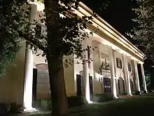 In 1936, the actor Bing Crosby built a Southern Colonial home in a four-acre walnut grove in Toluca Lake in the San Fernando Valley region of the city of Los Angeles, California. It was described by noted Architectural Digest writer Steve Vaught as "reminiscent of the great Southern plantations from that civilization gone with the wind, although in many respects it resembled George Washington's Mount Vernon estate. As with Mount Vernon, the Crosby home was graced by a sweeping colonnade running the entire length of the front facade." The house was virtually destroyed by fire due to faulty Christmas tree lights in 1943, but was later restored by subsequent owners. The original house had 6 columns across the entire front of the house, but subsequent renovations contain only four columns.