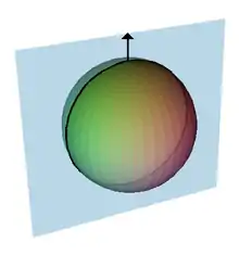 is also the equation of a sphere for arbitrary values of the parameters s and t. The set of all spheres satisfying this equation is called a pencil of spheres determined by the original two spheres. In this definition a sphere is allowed to be a plane (infinite radius, center at infinity) and if both the original spheres are planes then all the spheres of the pencil are planes, otherwise there is only one plane (the radical plane) in the pencil.[4]
