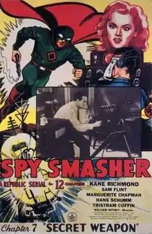 Spy Smasher is a 12-episode 1942 Republic serial film based on the Fawcett Comics character Spy Smasher which is now a part of DC Comics. It was the 25th of the 66 serials produced by Republic. The serial was directed by William Witney with Kane Richmond and Marguerite Chapman as the leads.[2] The serial was Chapman's big break into a career in film and television. Spy Smasher is a very highly regarded serial. In 1966, a television film was made from the serial footage under the title Spy Smasher Returns.