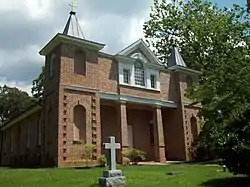 St. Andrew's Church is a historic church located at 44078 St. Andrew's Church Road, California near Leonardtown, St. Mary's County, Maryland. It was built in 1766 to serve as the parish church of St. Andrew's Parish, which had been established in 1744. It is a rectangular brick box church laid in Flemish bond with a gable roof and round-arched windows trimmed with brick segmental arches. At two corners stand two-story square brick towers with a diminutive spire. Richard Boulton designed the church in 1766; he was also responsible for the outstanding carving and ornamentation at Sotterley.[2] George Plater (1735-1792), who briefly served as Maryland's governor before his death, was an active parish member, serving twenty-eight years as a vestryman.