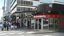 • Main entrance is at street level on its south side of St. Clair Avenue East. This is a staffed, wheelchair-accessible entrance. There is a McDonald's restaurant within the station building beside the entrance door.