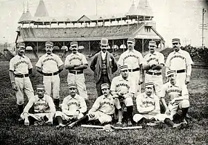 Following the 1886 season, the team was sold to the league, which in turn sold it to John T. Brush. He moved the team to Indianapolis, where they were renamed the Hoosiers.[1] Brush owned the stadium in Indianapolis, which had been previously used by the previous Hoosier team.