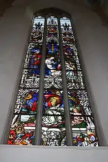 The formerly Gothic stained glass windows of the choir and the new sacristy have disappeared. The paintings that can be seen today date from 1894 and are considered outstanding works of art of historicism. They were created by the court glass painter Franz Xaver Zettler from Munich. Only a few Gothic and Renaissance stained glass windows have survived in the chapels.