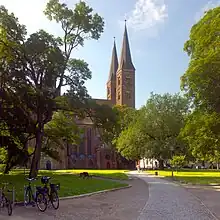 St. Nicholas was founded in 1188 by the Otto II, Margrave of Brandenburg and his brother Heinrich von Gardelegen, sons of Margrave Otto I, as a Collegiate church. As such, it was independent from the bishops of Brandenburg and under the direct supervision of the Papacy, and it exercised a leading religious role in the Mark.[1][2]