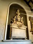 The Newcourt Family monument (see left) is the oldest wall memorial in the church dating to 1645 and is dedicated to Tobie Newcourt. It show Tobie Newcourt his son William and his four sons: John, William, Tobie and another John. The two female heads represent the wives of Tobie and his son.[10]