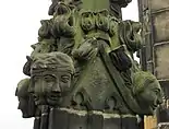 The richly decorated five-stage tower, 135-feet high, with its four striking hexagonal turrets, was begun in 1506 and is ascribed to William Hart of Bristol.[18] An example of the Somerset type, it contains 30 niches and is graced by many statues and carvings including those of an arrow and a deer, the attributes of Saint Giles. It is thought that the tower may have been an inspiration for Victoria Tower, at the Palace of Westminster.[19][20][21]