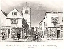 St Lawrence was built on Dial Lane in the heart of present-day Ipswich. The upper section of the tower was rebuilt in 1882 by the London firm of Barnes and Gaye. The new Victorian design consists of floral and geometric flintwork patterns and includes the initials S. and L. Unusually, the modifications also removed the central aisle from the nave in an attempt to prevent celebration of the High Anglican liturgy. It served as a parish church until the early 1970s, when the parish was declared redundant by the diocese due to its having no members.