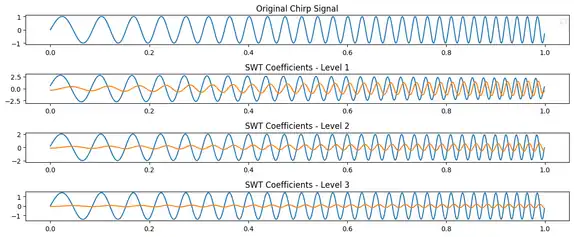 Here is an example of applying the stationary wavelet transform to the chirp signal, coded with python3: