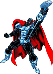 Steel is a superhero appearing in comic books published by DC Comics. He is a genius engineer who built a mechanized suit of armor that mirrors Superman's powers, and initially sought to replace him after he was killed by Doomsday. After Superman was resurrected, he accepted Steel as an ally. His real name is John Henry Irons and he wields a sledgehammer—this is a reference to the mythical railroad worker John Henry. He has a niece named Natasha Irons who is also a superhero in a similar mechanized suit of armour.