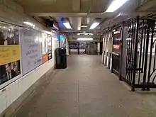 In 2003, the hours for this token booth were 6:10 a.m. to 1:45 p.m. Mondays through Saturdays. The entrances on this side, at the time, were only open 6:10 a.m. to 11:30 a.m. Mondays through Fridays, 6:10 a.m. to 12:00 a.m. Saturdays, and 4:20 a.m. to 12:00 a.m. Sundays.[27] In 2009, the MTA proposed closing the part-time booth, which was then open 6:10 a.m. to 1:30 p.m. Mondays through Saturdays. Access to this entrance has been added through HEET access between 2003 and 2009.[28]