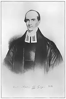Tyng was considered to be one of the most notable preachers of the time,[2] and leader in the evangelical party of the Episcopal Church. He was also well connected to other leading Evangelical Episcopalians such as Bishop McIlvaine of Ohio, with whom he shared extensive correspondence throughout his career. Tyng began his career with short stints as rector of St. George's, Georgetown and Queen Anne Parish, Maryland before being called as rector to "Old" St. Paul's Church in Philadelphia. At the time, it was a prominent congregation well ensconced in the evangelical party (he was preceded there by the Rev. Benjamin Allen) and a sign of the young man's great promise as a preacher and presbyter. He was instrumental in renovating the church building to accommodate Sunday school rooms as he was an early proponent of Christian education. Tyng remained at St. Paul's until 1833 when the fledgling Church of the Epiphany called him to be their first rector. Over the next 11 years, he grew the church tremendously until his departure in 1845.