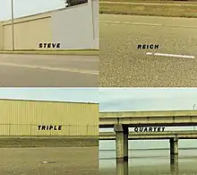 Besides the Kronos Quartet's version of Triple Quartet, the album contains three other Reich pieces. Electric Guitar Phase, one of Reich's "phase pieces," is played by New York guitar player Dominic Frasca. The composition is an updated version of the 1967 Violin Phase arranged for guitar and tape (or four guitars). Alan Pierson conducts Alarm Will Sound and the Ossia Ensemble from the Eastman School of Music, which perform Reich's 1978 Music for a Large Ensemble. The final track is Mika Yoshida's rendition of Tokyo/Vermont Counterpoint, performed on MIDI marimba.