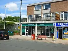 Stoneleigh has one main shopping area: Stoneleigh Broadway, next to Stoneleigh railway station, is about 280 yards (260 m) long and has around 60 retail units including convenience stores and restaurants, as well as a post office. A 2021 study, commissioned by the borough council, noted that the street was "pedestrian friendly" and that it benefitted from "a plentiful supply of free car parking".[19] The largest shops are a Co-Op on the south side of the Broadway and a Sainsbury's on the north side. Also on the north side of The Broadway is Stoneleigh Library, which opened in 1966.[20] It has been run by volunteers since 2013.[21] Stoneleigh also has smaller parades and shopping areas including: