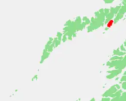 The 35.3-square-kilometre (13.6 sq mi) island has a ferry connection from the northern tip of the island to the village of Digermulen on the neighboring island of Hinnøya. Most of the 16 residents (2017) live in the small fishing village of Brettesnes on the southern tip of the island.[2]