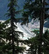 Myra Falls Operation is an underground mine located within a large stratiform basin in the centre of Strathcona-Westmin Provincial Park. It is owned by Nyrstar Myra Falls Ltd., a subsidiary of European mining company Nyrstar.[3] Mining operations were first approved by the Ministry of Mines and Petroleum Resources on 6 April 1970.[4] The mine started as two small open pits, but quickly became an underground mine with several expansions made since 1980.[4]