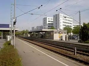 Stuttgart-Weilimdorf station is in the Stuttgart municipality of Weilimdorf in the German state of Baden-Württemberg on the Württemberg Black Forest railway and is part of the Stuttgart S-Bahn network.