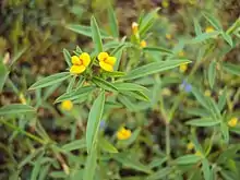 Stylosanthes fruticosa (syn. Arachis fruticosa), the African stylo, wild lucerne or shrubby pencil‑flower, is a species of flowering plant in the family Fabaceae. It is native to Cape Verde, sub-Saharan Africa, Madagascar, the Arabian Peninsula, India, Sri Lanka and Myanmar, and has been introduced to Hawaii.[1] Relished by livestock, it can survive light shade, acid soils and even light frosts. It grows from sea level to 2,000 m (6,600 ft) on as little as 300 mm (12 in) of rain per year.[2]