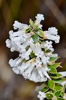 - ↑ "Leucopogon oxycedrus". FloraBase. Western Australian Government Department of Biodiversity, Conservation and Attractions.