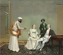 Heatly died in Bengal in 1793.[1] Although unmarried, a nephew has suggested that Heatly "formed a connection with a native of the Country, a thing of frequent occurrence at that time in India, by whom he had several children, whom he educated well and provided for – a daughter of his Mary was sent to England for her education." Christie's, the auctioneers, note that a 1786 portrait of an Indian woman possibly called "Ann" and painted by Charles Smith in Lucknow, might be that bibi (mistress), although bibis did not usually take English names. They add that an Ann Heatly married Joseph Welsh in Calcutta in 1792.[2] Heatly himself was painted, together with his sister Temperance, in Calcutta by Arthur William Devis.[23][lower-alpha 6]