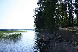 The 12th impact crater identified in Finland is located at the center of the lake.[1][2] The crater is 2.6 kilometers wide, ~200 meters deep, and mostly buried under later sediments. The age of the crater is not known. It formed before the Quaternary glaciation, but on the other hand after the host rock which formed in the Svecofennian orogeny 1910 million years ago. (Plado et al. assume the impact was Phanerozoic, but give no evidence to support this.[1])