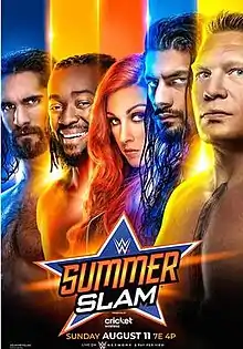 ![]() Promotional poster featuring Seth Rollins, Kofi Kingston, Becky Lynch, Roman Reigns, and Brock Lesnar | |||
