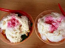 - ABC – ABC is an abbreviation for Air Batu Campur, or known as Ice Kacang Sungai Ruan, a dessert created from shaved ice added with corn, jelly, redbeans, groundnut, syrup, pasteurised milk, and liquid chocolate.